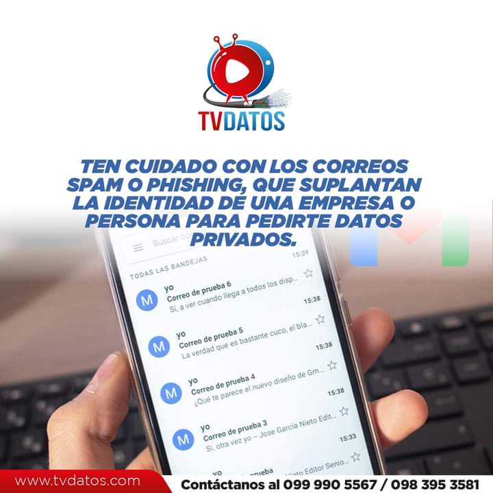 - Ten cuidado de los correos spam o phishing que suplantan una empresa o persona.